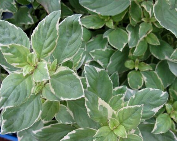 Базилик Pesto Perpetual - компактный кустарник с необычными листьями. Они яйцевидные с заостренным окончанием и ярко выраженным жилкованием. Окрас листа темно-зеленый, а кайма белая, тонкая. Сорт не цветет. Страна-поставщик - Нидерланды.