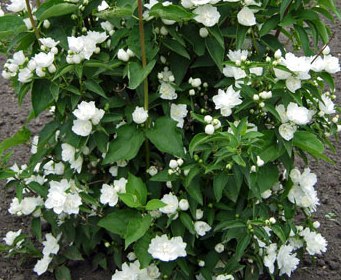 Чубушник Alabastrite - куст высотой около 2-х м. Цветки снежно-белые, полумахровые, крупные, диаметром около 5,5 см, собраны в кисти по 7-9 штук, длиной до 50 см. Продолжительность цветения 25 дней.