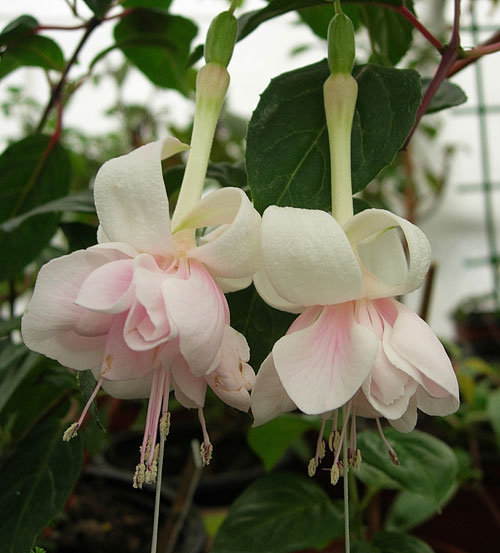 Фуксия Магда Церулис- ампельная форма фуксии. Цветы длиннотубные, махровые. Чащелистики нежно-розовые, завитками. Юбочка махровая, многоярусная нежно-розовая, нежно-лавандовая в начале роспуска. Труба тонкая, длинная темно-розовая. Бутоны удлиненные средцевидные бело-зеленые. Очень нежная расцветка.