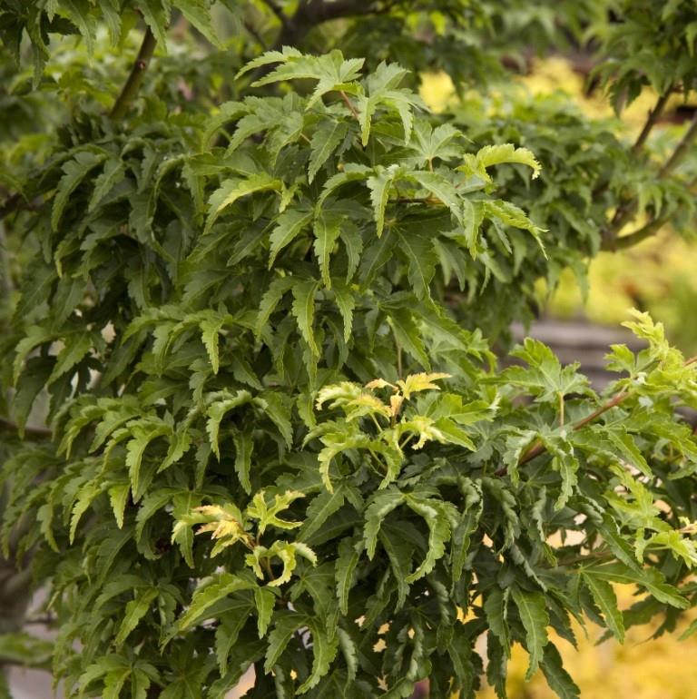 Один из самых интересных кленов, который редко бывает в продаже. Он является ценным дополнением для сада и заслуживает пристального внимания. «Shishigashira» в переводе означает «голова льва». 7-лопастные маленькие листья, 3-5 см длиной и шириной, морщинистые, иногда слегка закрученные, неравномерно разрезанные, глубокого зеленого цвета. Осенняя окраска интенсивно золотисто-желтая, с розовым и карминовым налетом.