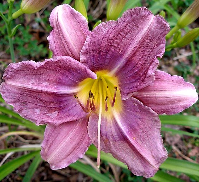 Саженцы лилейника Prairie Blue Eyes одни из первых "синих" лилейников. Высота данного сорта от 70 до 80 см, а высота цветоноса достигает 90см. Цветок достаточно крупный и раскидистый в диаметре 13 - 14 см. Что касается цвета, то этот сорт действительно завораживает, нежно - лавандовые лепестки со слабовыраженным синеватым глазом и очень нежным зеленоватым горлом. Внутренние лепестки крупномера Prairie Blue Eyes слабо – гофрированные, с продольной центральной полоской цвета слоновой коски, кстати, такого же цвета и края лепестков всего цветка. Сорт имеет хорошую приспособленность к зимним холодам, но рекомендуется легкое укрытие куста.
