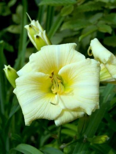 Саженцы лилейника Precious d Oro являются представителями низкорослых сортов. Миниатюрный лилейник всего 40 - 50 см с цветоносами до 55 см. Цветки тоже некрупные, примерно 7 - 9 см, они образуют густые соцветия по 4 - 5 бутонов. Цвет этого лилейника напоминает топленое молоко, очень нежный кремовый цвет лепестков подчеркнутый полностью гофрированными краями и зеленоватым горлом. Цветок раскидистый и хорошо открытый, лепестки сильно отогнуты к цветоносу и обладает сладковатым ароматом. Крупномер Precious d Oro отличается обильным цветением на протяжении 2 - 2,5 месяцев. Лилейник устойчив к холодам и не требует укрытия.