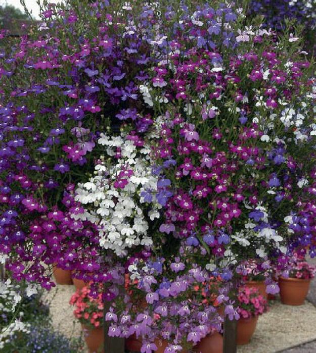 Лобелия Cascade - растение со свисающими стеблями длиной 30 см и многочисленными, мелкими цветками белой, розовой либо голубой окраски. Цветет с июня по конец октября. Используется для посадки в смешанных группах с другими видами декоративных растений, для балконных ящиков и подвесных ваз.