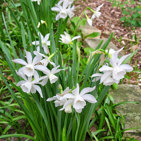 Нарцисс триандрусовый Талия - очаровательный, низкорослый сорт. Растение высотой до 35 см. Цветочки аккуратной формы, белого цвета. Данный сорт можно выращивать в комнатных условиях, в контейнере на балконе, или в открытом грунте. Нарцисс триандрусовый Талия цветет довольно долго и интенсивно.