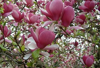 Магнолия Rustica Rubra - новый сорт с красивыми бокаловидными и крупными цветками. Цветы округлой формы, розово-красного цвета снаружи, а внутри бело-розовые, распускаются в конце апреля до начала мая. Растет в виде невысокого деревца с низкой кроной или как широкий кустарник высотой до 5-7 метров. Растение распускает свои цветки на голых ветках.