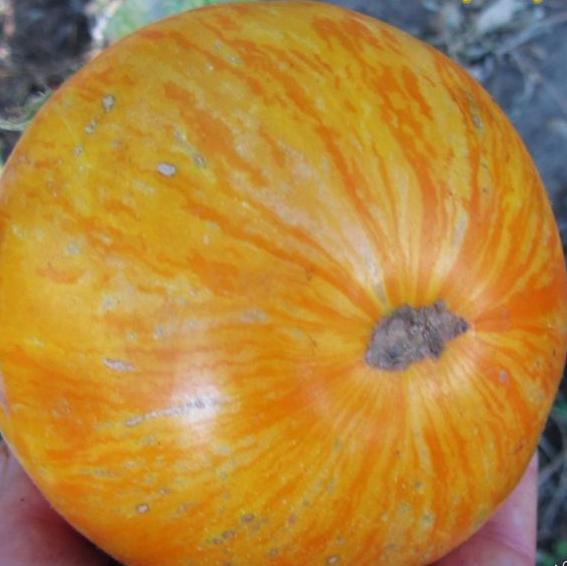 - Незрелые плоды с тёмно-зелёными полосами, зрелые -оранжевые с жёлтыми, на срезе - ярко-оранжевые.
