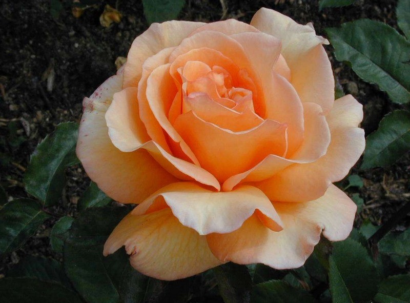 Роза Doris Tysterman - эффектная роза с яркими апельсиново-оранжевыми цветками, нежно-розовыми оттенками и легким приятным ароматом. Цветки классической формы, с высоким центром, махровые (28-35 лепестков), крупные (диаметром 10 - 12 см) появляются большей частью по одному. Внешние лепестки гораздо крупнее внутренних, благодаря чему цветок красиво распускается.