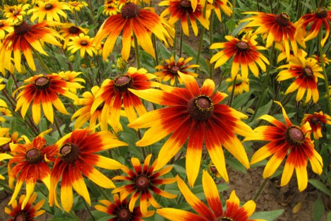 Рудбекия Gloriosa Desy - гибридная комбинация рудбекии гибридной. Многолетнее травянистое растение 100-120 см высоты, зацветающее в первый год после посева. Тетраплоид. Корзинки 15-16 см диаметром, одиночные, верхушечные, на длинных цветоносах. Краевые цветки чаще одно-двухрядные, иногда трехрядные, язычковые. Язычки длинные, линейные, с загнутыми вниз краями, короткозаостренные, желтые и красно-коричневые, а также двуцветные, с широкой каймой у основания диска. Дисковые цветки коричневые, образующие конический диск. Размножается семенами.