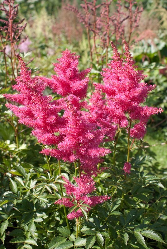 Саженцы астильбы Drum аnd Bаss – молодого, но уже очень популярного сорта из Голландии – понравятся садоводам, которые отдают предпочтение самым эффектным и красивым декоративным растениям. Эта астильба расцветает насыщенным красно-фиолетовыми цветками, собранными в плотные кисточки-соцветия. Крупная яркая листва изящно дополняет общую картину. Саженцы этого сорта могут быть высажены даже на солнце, если обеспечить достаточное увлажнение почве под ними.