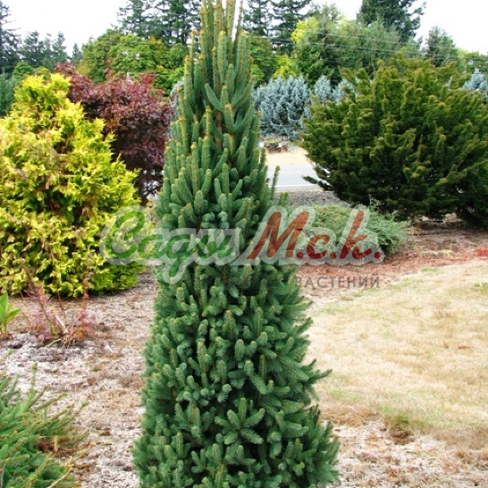 Ель колючая Lucky Strike - медленно растущее хвойное карликовое дерево с широкой неправильной конической формой кроны. Высота взрослого растения не превышает 2 м. В 10-летнем возрасте не превышает 1,2 м и немного меньшего диаметра. Хвоя короткая, темно зеленая, блестящая, жесткая, 2-3 см длиной. Молодые приросты желто-зеленого цвета. Ветви изогнуты. Шишки очень крупные, вначале лилово-красные, затем коричневеют.