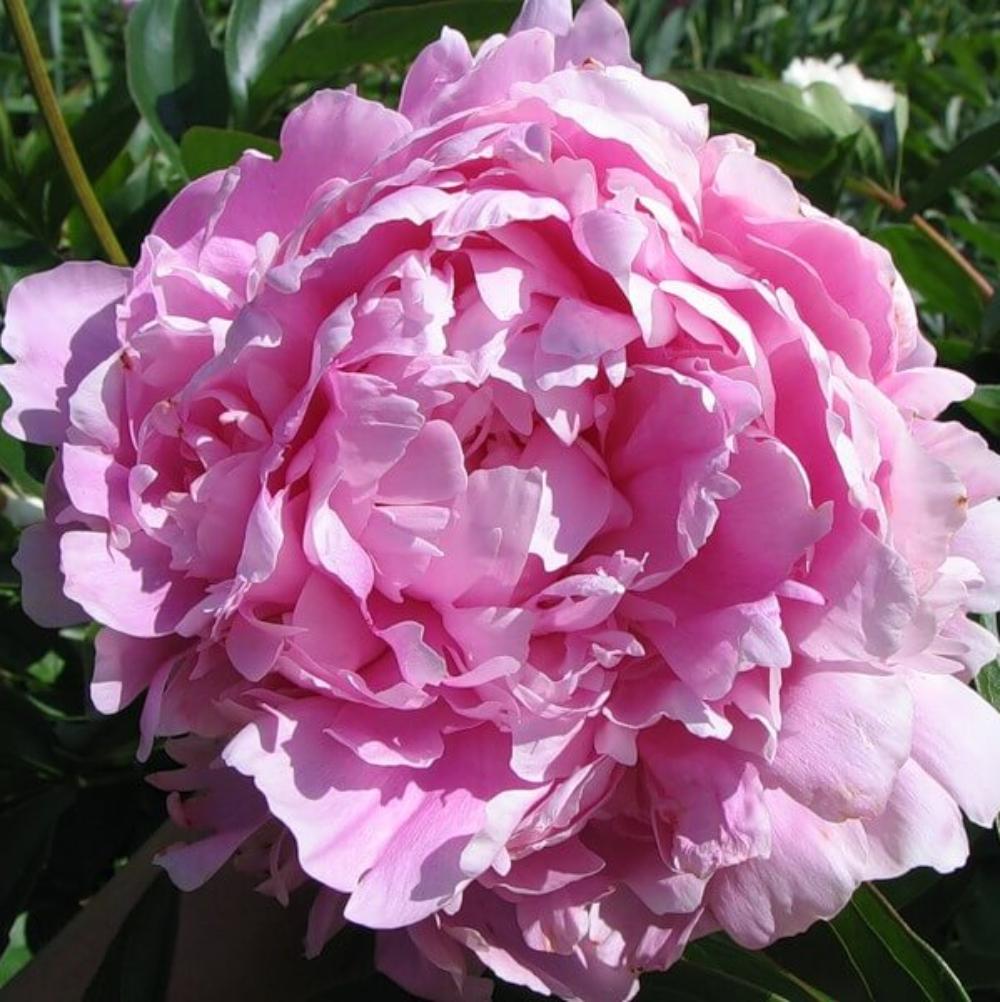 Травянистый пион Clemenceau махровый, шаровидный. Характеризуется он средним сроком цветения. Лепестки собраны в яркие розово-красные крупные шары, которые смотрятся роскошно на фоне широких зеленых листьев. Высота 90 см. Размер цветка 20 см.