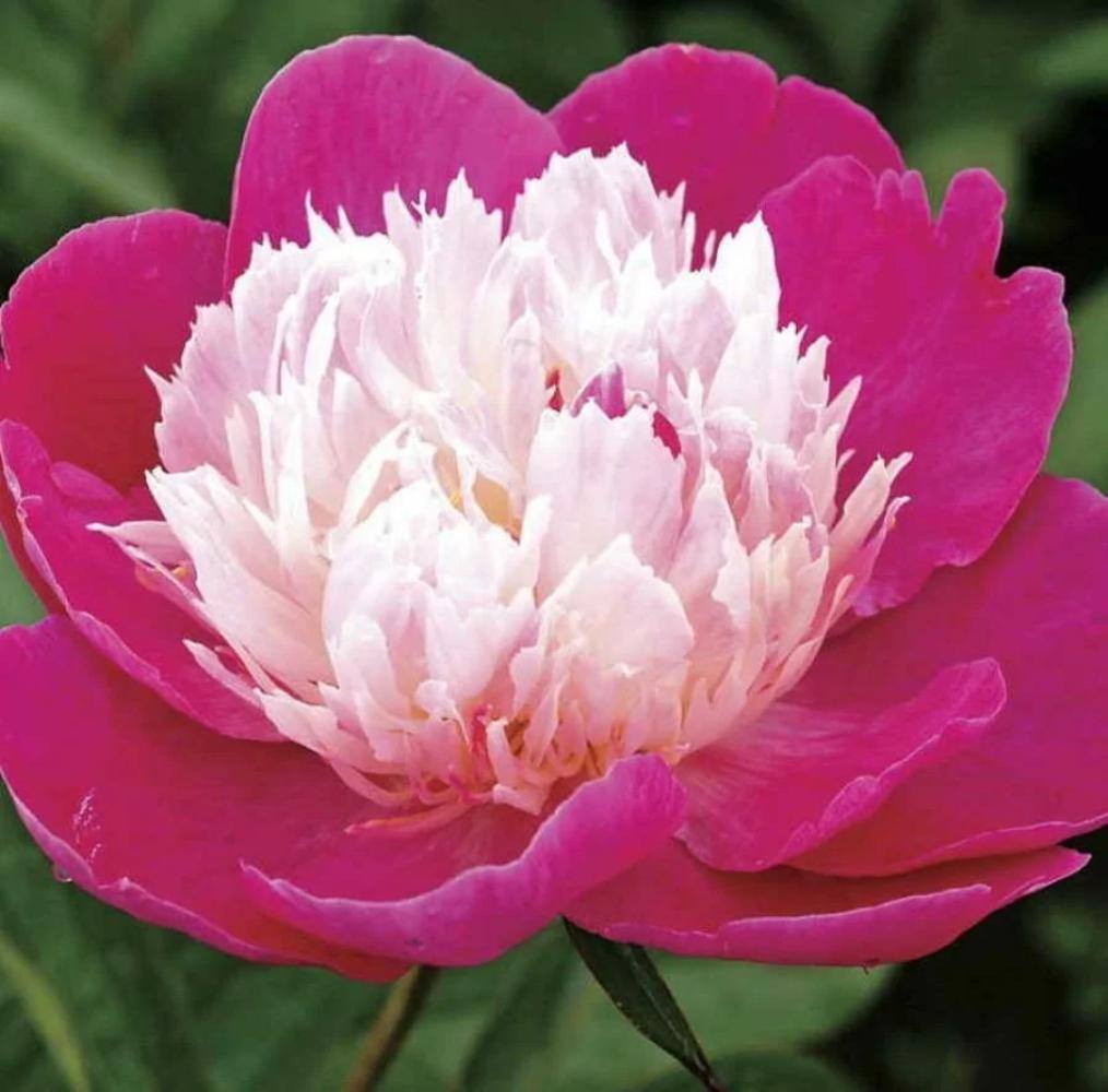 Крупномер пиона Santa Fay, 90 см, предназначен для создания уникального дизайна в саду. Цветоносы устойчивы, не опадают в букете до 10 дней. Кустарник сохраняет свою форму и не разрушается тяжестью бутонов. Яркая листва сохраняется до первых заморозков, немного меняя оттенок. Достоинства сорта: зимостойкость, не требуется уход.