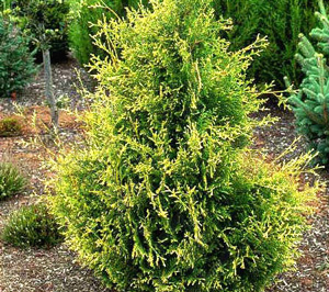 Туя восточная Элегантиссима "Ellegantissima" - деревце высотой до 5 м. Крона плотная, ширококоническая. Молодые побеги беловатые на концах. Хвоя ярко-зеленая, блестящая.