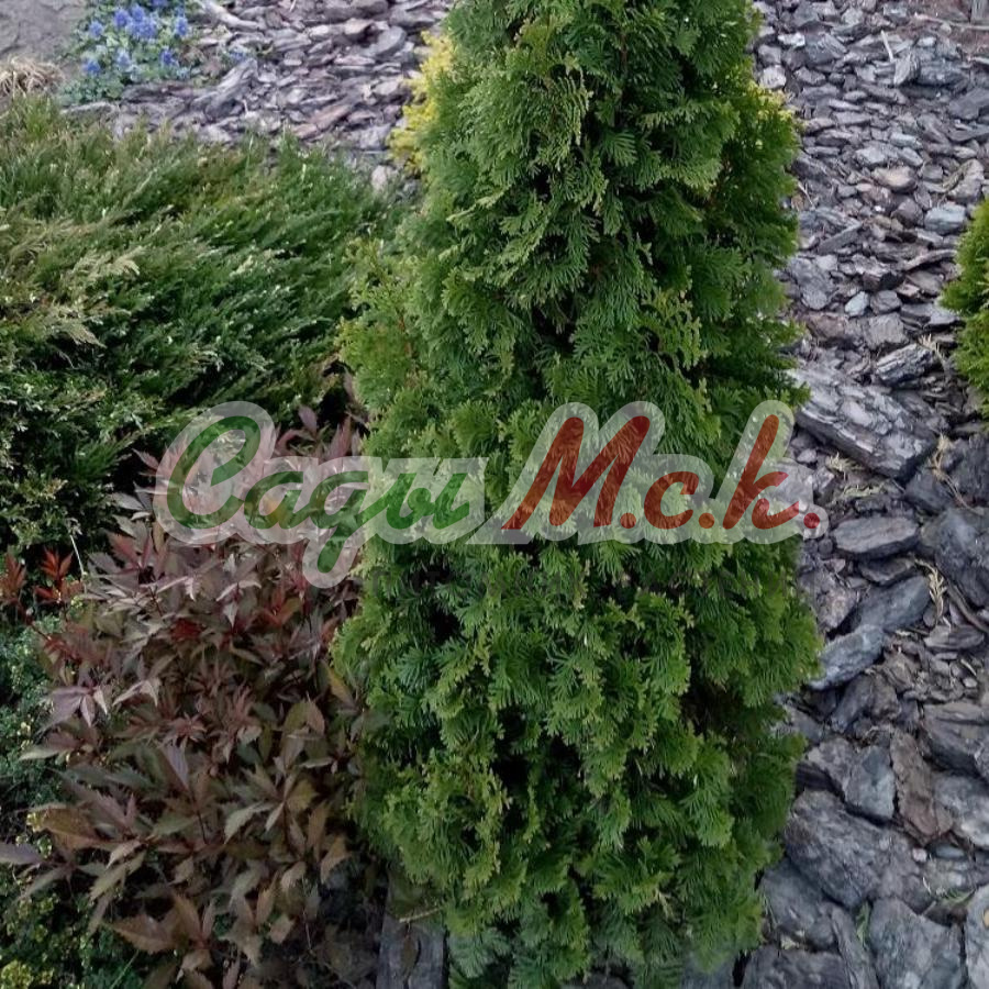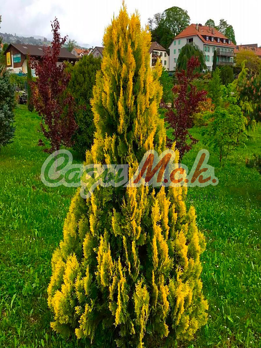 Туя западная Frieslandia - растение до 8 м в высоту и до 3 м в диаметре. Растет быстро: годовой прирост в высоту составляет 20 см. Крона плотная, широкая, колоновидная. Хвоя матовая, плотная, чешуйчатая ярко-зеленого цвета. Осенью листва становится серовато-бурого цвета, а весной снова зеленеет. Популярный сорт. Благодаря сравнительно быстрому росту часто используется для создания формованных живых изгородей.