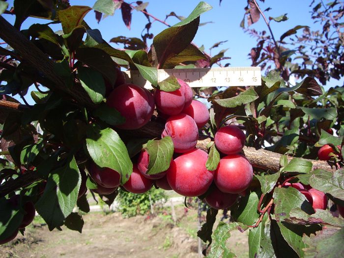 Алыча краснолистная Алые Паруса - сорт среднего срока созревания. Дерево среднерослое, высотой до 4-5м с раскидистой, редкой кроной. Молодые листья насыщенно красные, цветы розовые. Плоды средние, массой до 25г, овальной формы. Мякоть ярко-красная, нежная, сочная. Вкус хороший. Срок созревания - вторая половина июля - начало августа.
