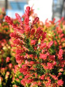 Вереск обыкновенный сорта Spring Torch – многолетний вечнозеленый кустарник с вертикальной кроной, который характеризуется невысокой скоростью роста, благодаря чему не превышает в высоту полуметра. Цветы этого сорта очень красивые, огненного, оранжево-красного цвета, расположенные на растущих вертикально соцветиях. Листья игольчатые, ярко-зеленые. Длина соцветий достигает двадцати сантиметров. Цветами радует с середины августа до середины сентября.По окончании периода заморозков рекомендуется делать обрезку куста.Любит умеренно увлажненную, обогащенную почву.Морозоустойчив, но поздние весенние заморозки могут нанести вред кустарнику.Светолюбив и будет пышно цвести на участках с хорошим доступом солнечного света. Может расти и на притененных территориях.