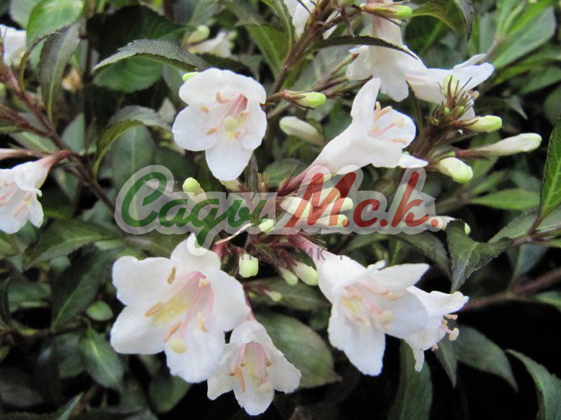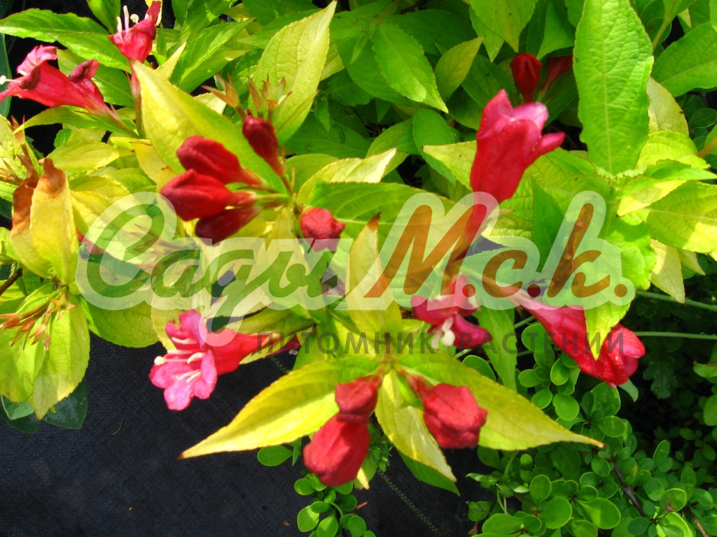 Саженцы Вейгелы Magical Rainbow способны достичь 1.2-1.3 метра в высоту, а разветвление в ширину у этого растения самое разлогое среди сородичей. Особенностью крупномера Magical Rainbow является цвет листьев: весной они зеленые с желтой каемкой, а к осени их очертания приобретают красно-багровый цвет. Цветет это растение очень светлыми розовыми вытянутыми колокольчиками, собранными на ветке по 4-5 штук. У этого сорта Вейгелы слегка заостренные листочки, которые наделены желтоватой каемкой, розовеющей в течение летнего периода. Плодов как таковых она не имеет, тем не менее, требует постоянного удобрения и разрыхления почвы.
