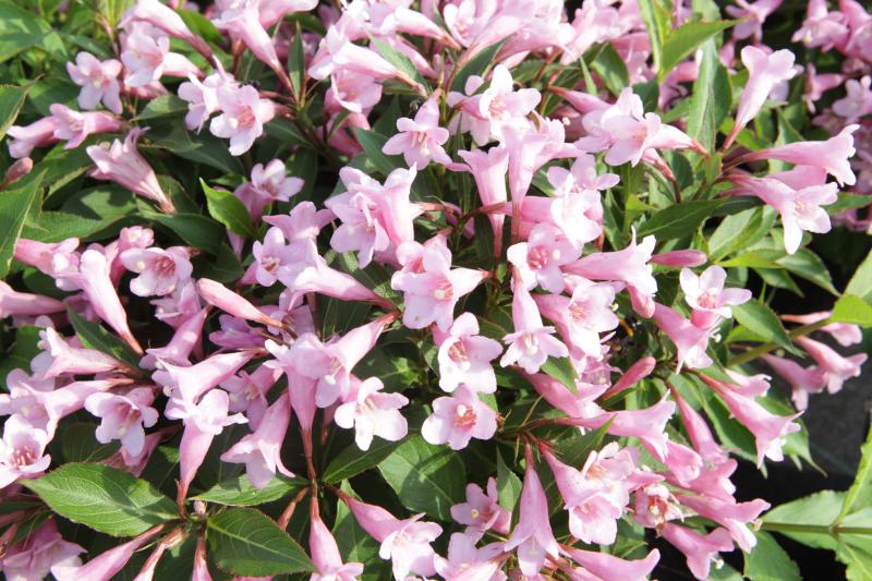Вейгела цветущая Пинк Поппет – элегантный многолетник с вытянутыми листьями зеленого цвета. Снизу листовая пластинка имеет войлочный слой, по краю листа имеется мелкозазубренная оторочка. Цветы колокольчатые, нежно-розового оттенка.