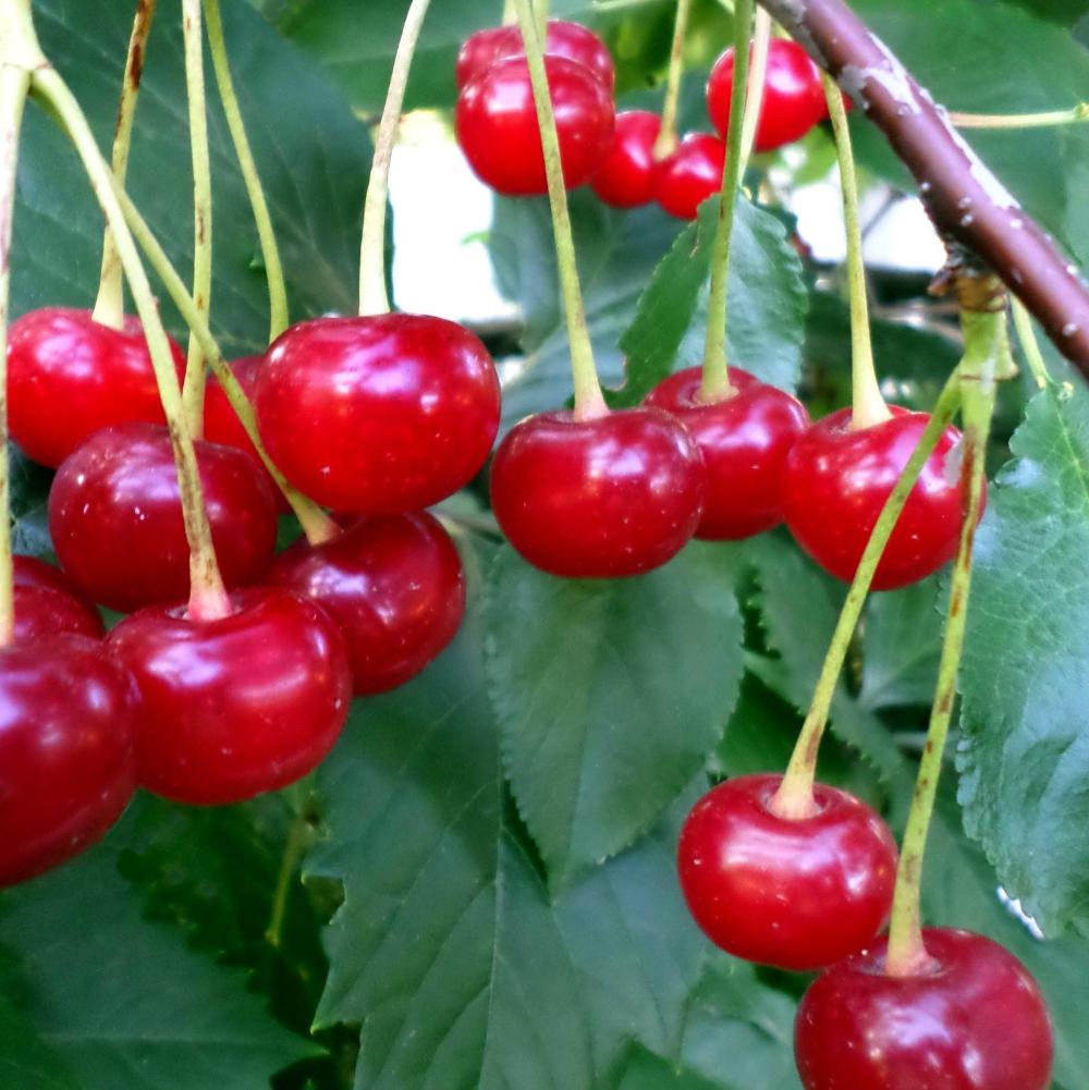 Саженцы вишни обыкновенной Муза понравятся садоводам своей адаптивностью к болезням и вредителям, а также регулярным урожаем. Срок созреваемости этой формы средний. Крупномеры вишни Муза развиваются с умеренной скоростью, а плодоносить начинают через три-четыре года. Крона не особенно густая, приподнятая, обратнопирамидальная. Сорт отличается самобесплодностью. Ягоды по размеру ближе к крупным – примерно 4 г. Темно-вишневый цвет кожицы. Красная мякоть. Сладкий вкус.