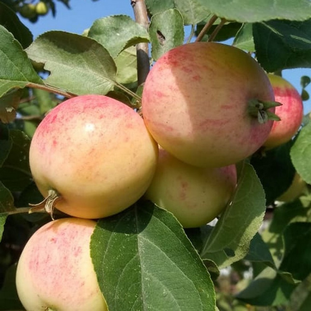 Яблоня карликовая Неженка - летний сорт. Плоды одномерные, округлые, зеленовато-желтого цвета с розовым размытым румянцем. Плоды созревают 1-10 августа. Мякоть белая, сочная, нежная, вкус кисло-сладкий, с ароматом, оценивается на 4,5 балла. Дерево среднерослое. В плодоношение Яблоня карликовая Неженка вступает на 4-й год и плодоносит ежегодно и обильно.